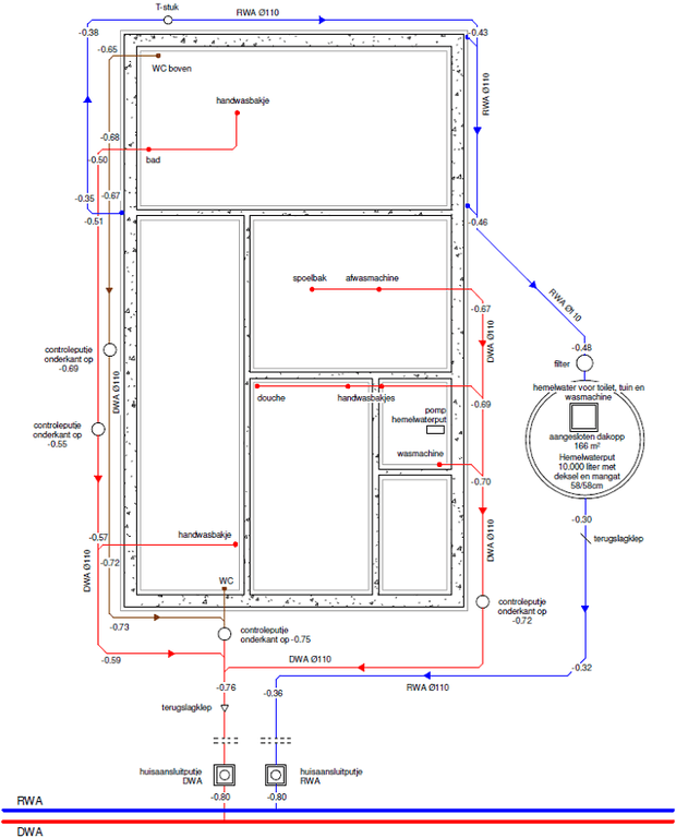 Bij de aanleg van een nieuwe riolering vraagt men dat het afvalwater en het regenwater van de woningen, appartementen, bedrijven en andere gebouwen op privaat domein gescheiden afgevoerd wordt naar de riolering.